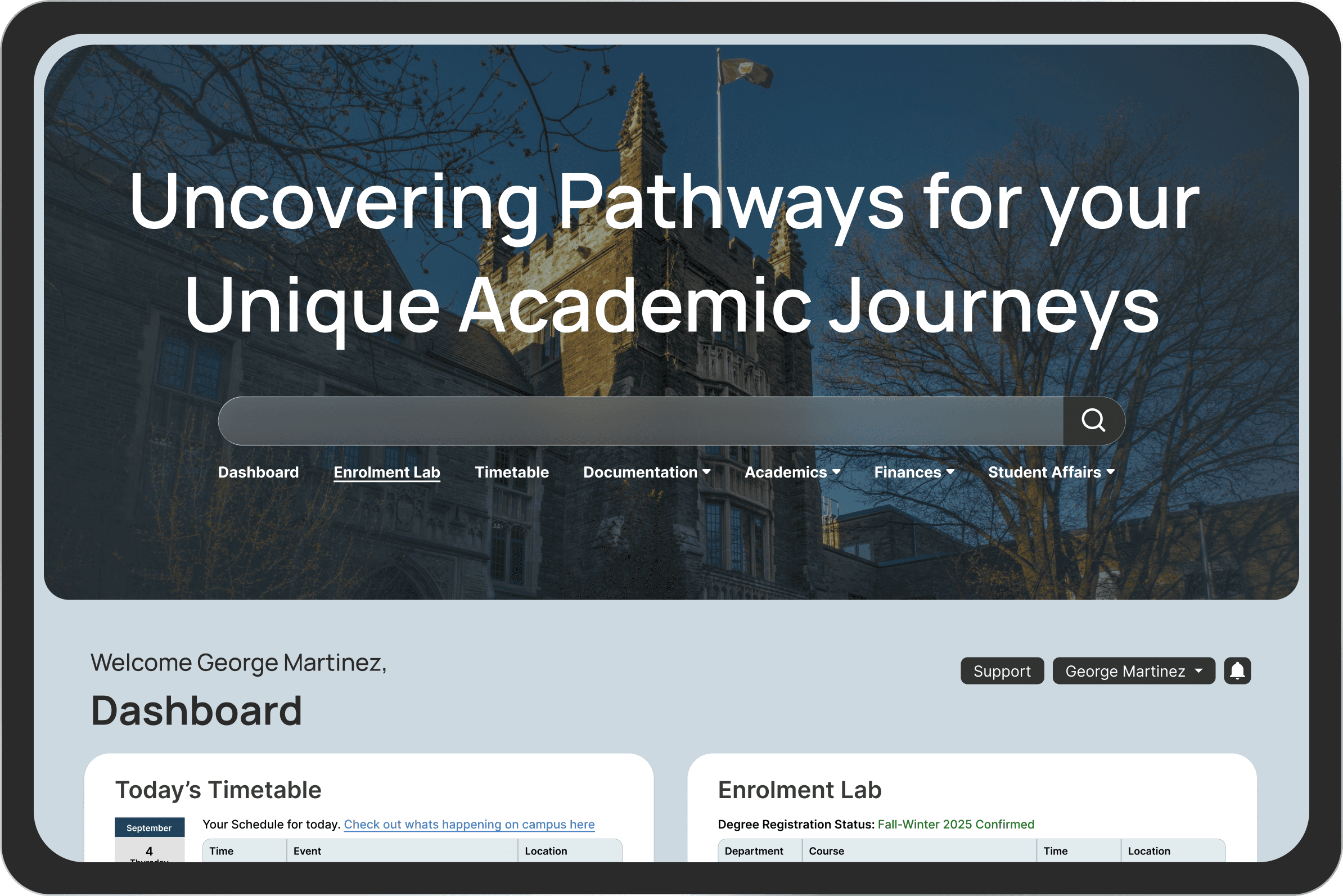 Planning Dashboard Drag-and-drop pathways, real-time requirement tracking, “what-if” planning.