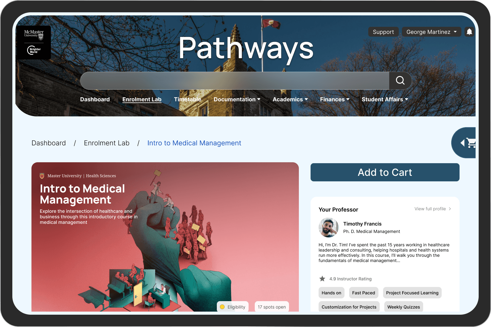We redesigned McMaster’s Mosaic course selection to turn a stressful, fragmented process into a collaborative, career-aligned experience. This project was completed in association with McMaster University Administration.